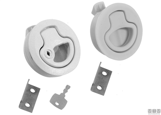 Priključna ključavnica iz najlona za vgradnjo s potisnim zapiranjem za lopute in predelne stene. Vključno z udarcem in vijaki.
