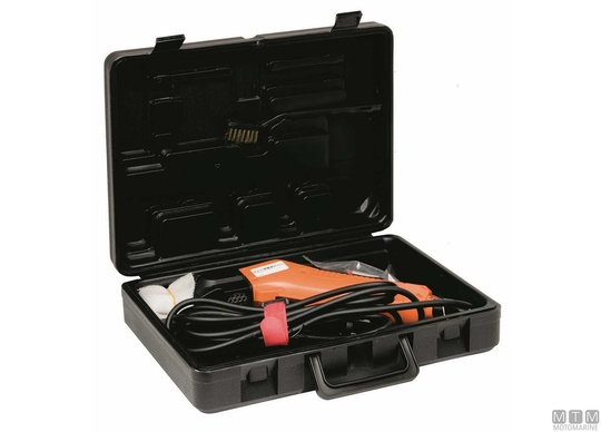 220V/90W Profesionalna električna pištola za rezanje vrvi z neprekinjenim delovanjem. V nekaj sekundah doseže 500°C in hitro reže tudi vrvi, kite in vrvi velikega premera. Takoj se ohladi zahvaljujoč sistemu zračne hlajenja. Primerna tudi za rezanje jader, tend, pasov, trakov in vseh sintetičnih platnenih materialov. Vključuje rezilo, čistilni čopič in 3 m napajalni kabel. Prihaja s prenosnim orodjem.