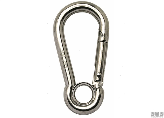 Visokokakovostno 316 nerjaveče jeklo Standard Carabiner z očesom, dobavljen na predstavitveni kartici. Delovna obremenitev (WL) testirana in zajamčena. Pretržna obremenitev (BL) je 4-kratnik delovne obremenitve.