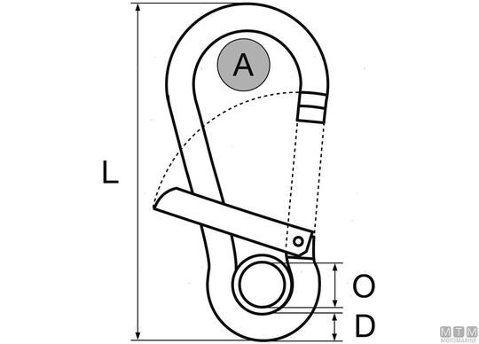 316 nerjaveče jeklene karabine s širokim bočnim odpiranjem in očesom. Sistem proti prijemanju. Preprečuje zapletanje vrvi.