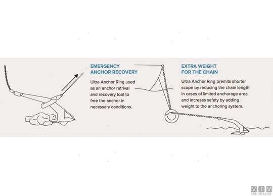 Stainless Steel anchor ring used to easily recover the stranded anchor or to ballast the chain by increasing the anchor's strength.