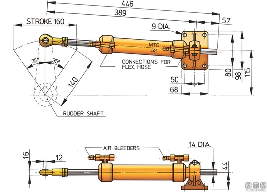 Vetus hidravlični krmilni sistem s krogelno glavo na ročici za čolne do 9 metrov.↵Komponente in dodatki se prodajajo ločeno:↵↵1 kos - MTC52 cilinder z največjim navorom 52 Kgm ↵1 kos - HTP2010 krmilna črpalka brez NR ventila (5,3 zavrtljajev volana z MTC52 cilindrom)↵1 kos - HTP3010 krmilna črpalka z/brez NR ventila (3,5 zavrtljajev volana z MTC52 cilindrom)↵4 kosi - Večkrat uporabni ravni ali ukrivljeni priključki za cev 5/16↵5/16 Hidravlična cev na pakiranje