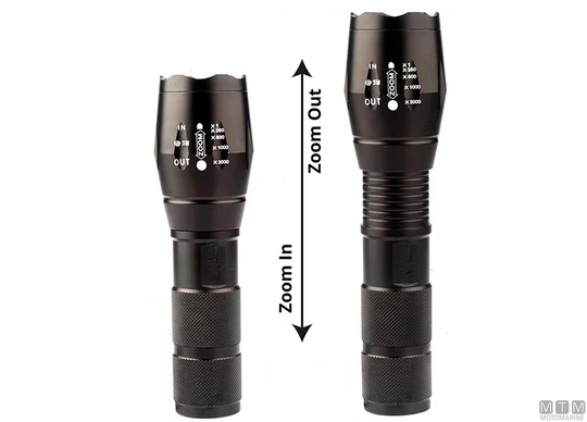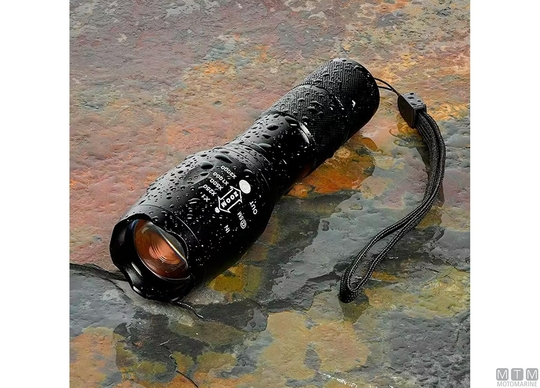 Kompaktna LED svetilka IP65 vodoodporna 300 lumnov z rebrasto aluminijasto ohišje. 4 vrste svetlobnih nastavitev: močan (100%) - srednji (50%) - nizek (20%) - utripajoč. Prilagodite zoom za spremembo koncentracije svetlobnega snopa. Deluje s 3 AAA baterijami ali z eno polnilno baterijo 18650 (ni vključena).