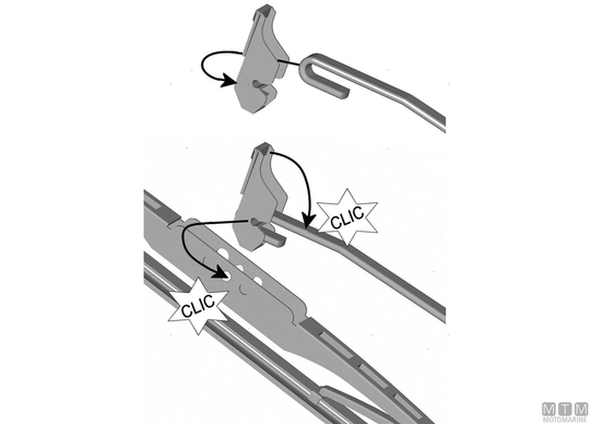 Metlice brisalcev iz brušenega jekla Roca z vložkom iz naravne gume. Opremeljene s 3 univerzalnimi nosilci za pritrditev na ravne in J-kljuke.