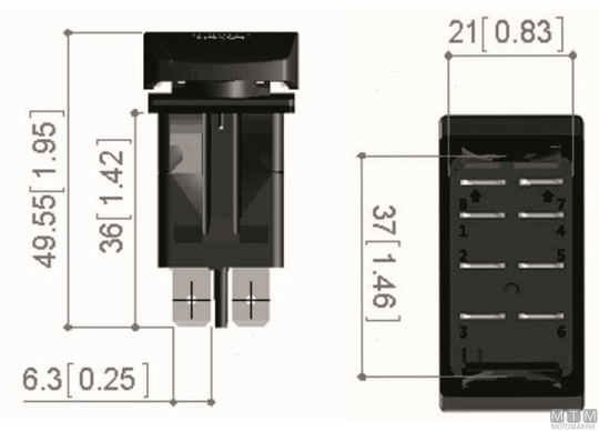 3-položajni VKLOP-IZKLOP-VKLOP 12/24V (20/10A) brisalni preklopni stikalo. IP68 vodoodporen z nitrilnim tesnilom in lasersko jedkanimi aktuatorji. Simbol je vedno osvetljen (rdeča LED), medtem ko se besedilo oznake osvetli (bela LED) ob aktivaciji stikala.