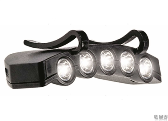 Priročna in lahka LED svetilka za glavo s sponko za šilt kape. Popolna za osvetljevanje delovnega prostora spredaj. Avtonomija 8 ur. Deluje z 2 x baterijami tipa CR2032 (niso priložene).