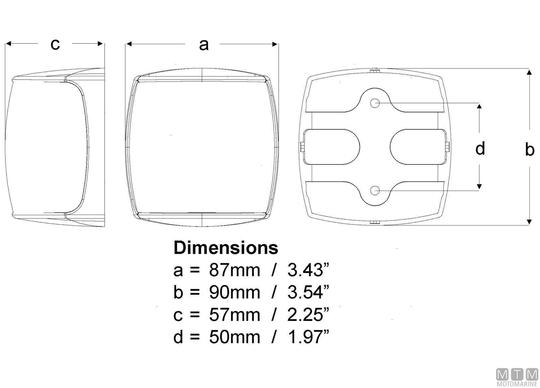 Hella Marine NaviLED PRO navigacijske luči za plovila do 20 in 50 metrov s 5NM premčno lučjo. IP67 vodotesno ohišje, odporno na korozijo in UV žarke z Grilamid udarnimi lečami. 9-33V multivolt elektronika z zaščito proti konicam napetosti in kratkemu stiku polaritete, poraba 3W. Popolne z 2,5 metri morskega kabla. Dimenzije: 87 x 90 x V57 mm. CE, SOLAS in R.I.Na.certificirano.