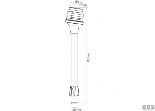 10-24V 360° LED Light on Removable Pole with Base. For vessels up to 12 meters. Base size: Ø54 mm. Hole: Ø31 x 72 mm. Pole height 600 mm.Visibility 2NM