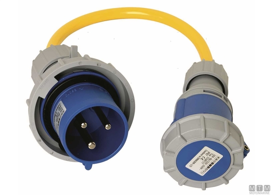 50 cm podaljševalni kabli za adapterje z vodo nepropustnimi vtiči in vtičnicami IP67 s CE standardom.↵2106651: prilagodi napajalne kable obale z 16A vtičem na 32A priključek obale. ↵2106653: prilagodi napajalne kable obale z 32A vtičem na 16A priključek obale.↵ Opozorilo: največja dovoljena moč za oba kabla je 16A - 240V - (3KW)