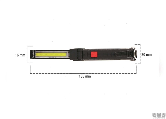 Kompaktna in lahka LED delovna luč z USB polnilno litij-ionsko baterijo s 5 urami avtonomije.360° vrtljiv ročaj opremljen s 100-lumnskimi LED diodami in sprednjo LED za popolno osvetlitev vsakega delovnega področja.Z magnetno glavo in kavlji za idealno pozicioniranje pri delu.