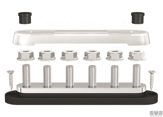Izolirana osnovna elektroda z bakrenimi terminali iz nerjavečega jekla in zaščitnim pokrovom.↵ 6 M10 navojnih stebrov.Dim: 178mm x 38mm x H43mm.