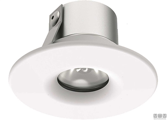 3,5W IP65 LED reflektor za notranje in zunanje prostore z belo pobarvano aluminijasto obrobo. Vgradnja s pomočjo vzmeti. Univerzalna napetost 9-32V z zatemnilno LED zaščiteno pred konicami in povratno polariteto.