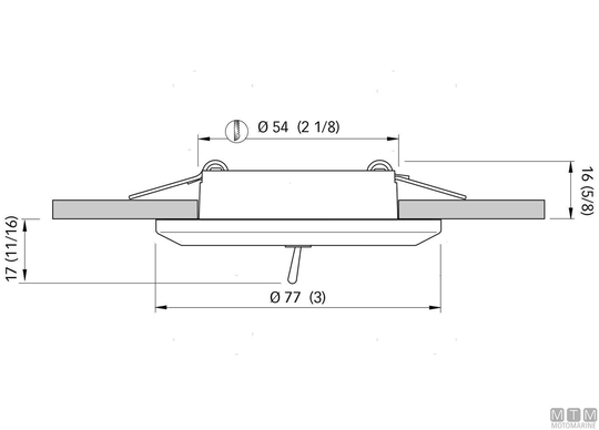 2W IP40 LED spot svetilka za notranje prostore s pritrditvijo in stikalom iz nerjavečega jekla 316. Ugrezna montaža z vzmetmi. Univerzalna napetost od 9-32V z možnostjo zatemnitve LED, zaščitenim pred sunki in obratno polariteto.