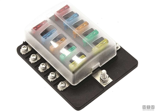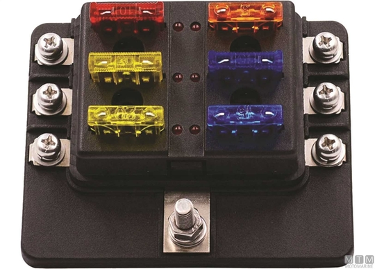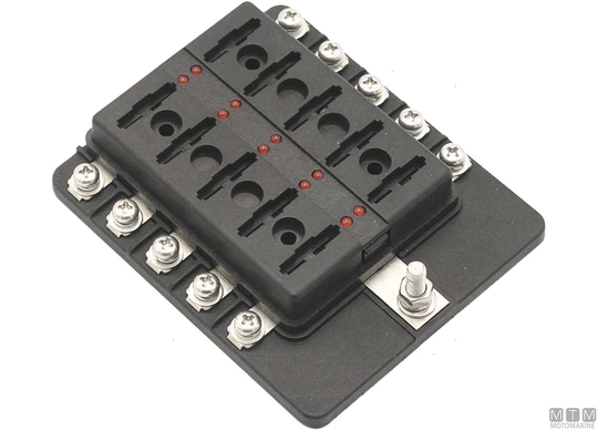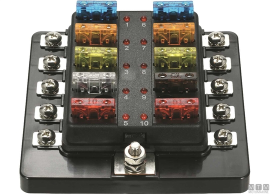 Standardni blok varovalk z rezilom MIDI s skupnim pozitivnim polom.↵ LED indikator alarma, ki se aktivira, ko je varovalka pregorela.↵ Prozoren zaščitni pokrov. Samolepilne nalepke s simboli uporabnosti.↵Vijačni kontakti za dodatno varnost.