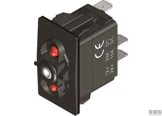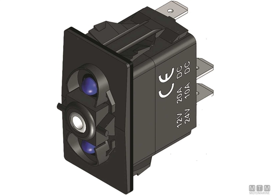 Vodoodporno bipolarsko stikalo z nihajno ročko velikosti Carling 12/24V-20A IP68 z nitrilnim tesnilom in dvema belima/rdečima/modrima LED lučkama. Dokončano s pokrovčkom po vaši izbiri.