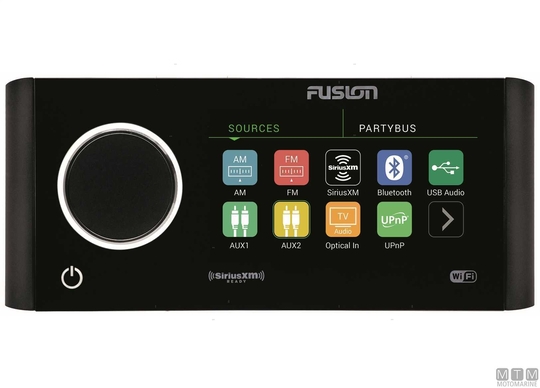 Fusion MS-RA770 pomorski stereo z zaslonom na dotik LCD prikazovalnikom s steklenim vezjem. FM/AM RDS radio, pripravljen za DAB, z USB vhodom in dvema zadnjima AUX vhodoma. Vgrajen Wi-Fi in Bluetooth za pretakanje zvoka iz pametnih telefonov ali združljivih naprav. Preko funkcije daljinskega upravljanja Fusion-Link se stereo lahko upravlja tudi s Garmin urami ali večfunkcijskimi zasloni NMEA2000. Opremljen z DSP (tehnologijo digitalne obdelave signalov) za optimizacijo zvoka v realnem času. Neodvisne nastavitve Multi-Zone nadzora za štiri ločene avdio cone.IPx7 vodoodporen.Lahko je vgradni ali ploskasto nameščen.Komplet za naknadno montažo omogoča namestitev stereo naprave v že obstoječe odprtine serij 650/750/755.