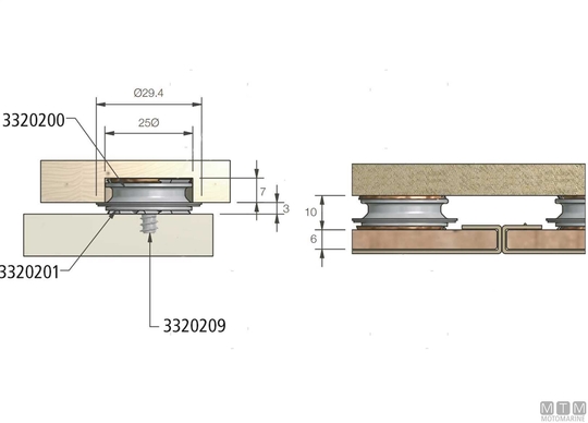 Ultra-nizek profilni sistem za montažo panelov Fastmount VL s skupno debelino 10 mm je inovativna rešitev, ki zagotavlja enostavno in varno namestitev katerega koli panela. Ženska spojka 3320200 se lahko montira z vijakom 3320209 ali lepilom. Za žensko vdolbino je potrebna luknja premera 26 mm. Nosilnost: 5 kg. Par je samonastavljiv.