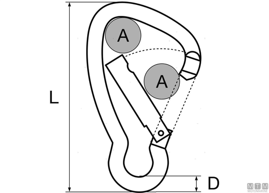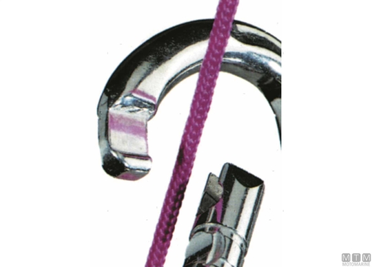 Karabin iz nerjavečega jekla 316 s širokim odpiranjem. Sistem pritrjevanja Antigrip. Preprečuje zapletanje vrvic.