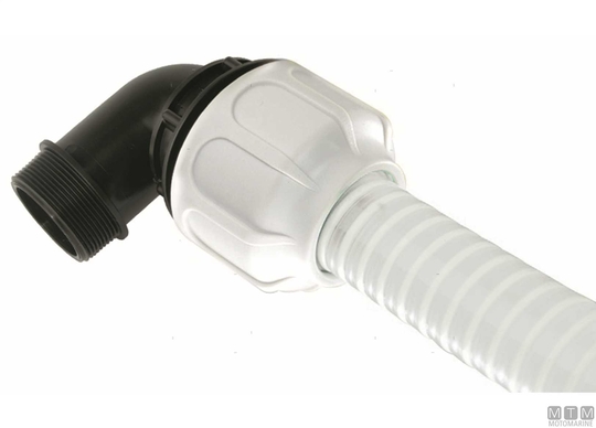 Ojačan polipropilenski hitro spojni kolenasti priključek. Idealno za hitro povezovanje katere koli vrste gibkih in spiralnih/brazdastih cevi. Odpravlja običajno cevno objemko. Vodotesno tesnilo do 10 barov.