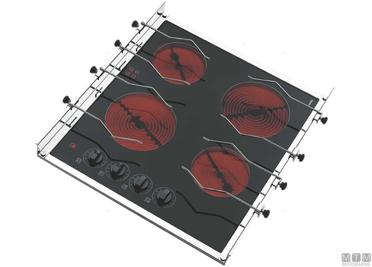 Vgrajene kuhalne plošče Techimpex 220 V z vitrokeramičnimi sevalnimi ploščami, senzorskim upravljanjem na dotik in ohišjem iz nerjavečega jekla. Opremljene s kazalnikom vklopa in indikatorjem preostale toplote. Po želji možnost dodajanja držal za posodo z zaščito pred vročino. Moč kuhalnih plošč:↵Linosa 1200+1700W↵Torres 1200+1200+1700+1700W