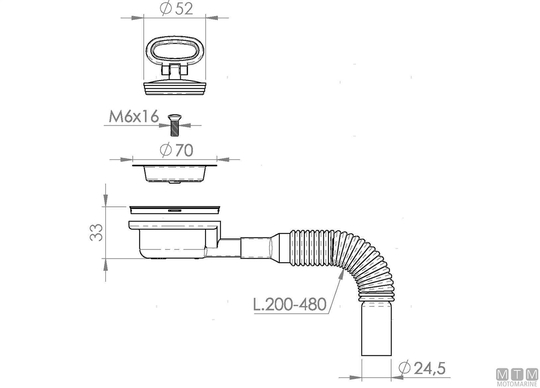 Velik odtok z raztegljivo cevjo