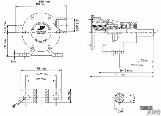 Bronze body Neoprene impeller cooling pump. Johnson ref 10-24570-01.
