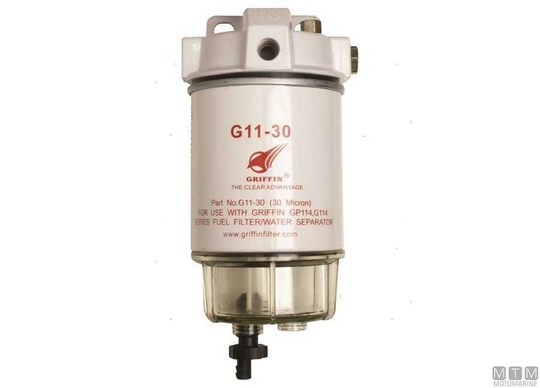 Griffin diesel filtri s tehnologijo MICROBLOC. Visoka zmogljivost ocenjena (99,8 % učinkovitost pri ločevanju vode od dizla). Priložen 30-mikronski vložek. Lahko nadomesti Racor Spin-on filtre.
