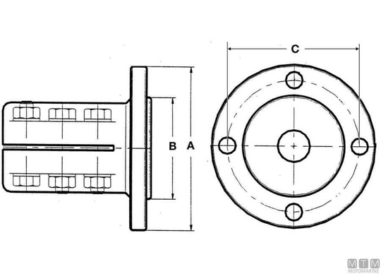 Sklopna prirobnica za 30 mm propelerne gredi.