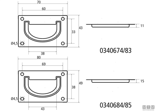 Medeninasti vgrajeni kvadratni ročaj za dvigovanje. Lok prijemalo.