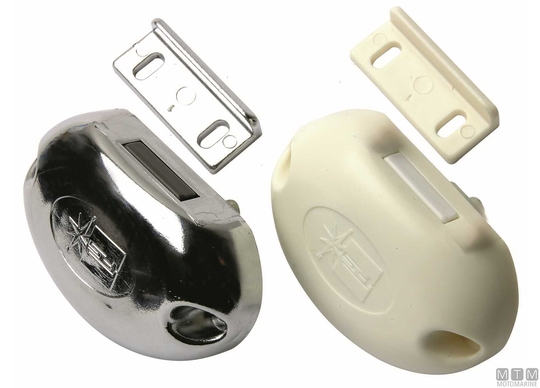 F&S Plastična obročna zapah s kromiranimi medeninastimi gumbi za lopute in predale. Za dokončanje z gumbom za pritisk. Dimenzije ohišja zapaha: 70 x 50 mm.