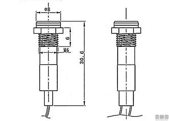 Vodotesne kromirane medeninaste 12V LED signalkovinske luči. V kompletu z matico, tesnilom in varovalno podložko. Največja debelina panela 6 mm.