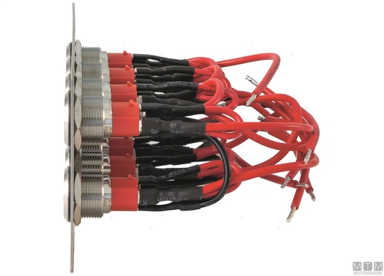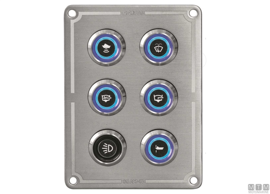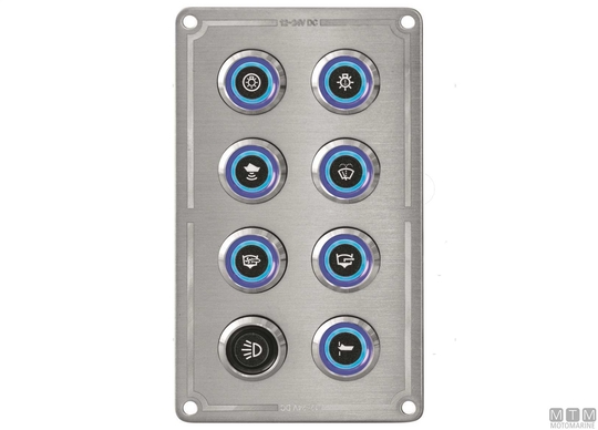 IP65 vodoodporna plošča iz nerjavečega jekla z 12/24V-15A D19 mm gumbi iz nerjavečega jekla z modro LED lučko. Priloženi montažni vijaki in komplet nalepk.