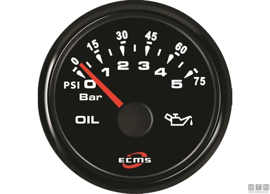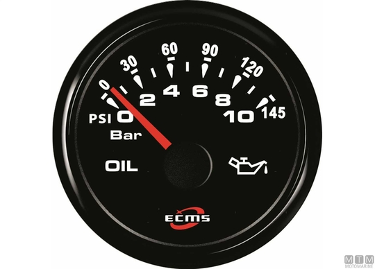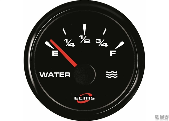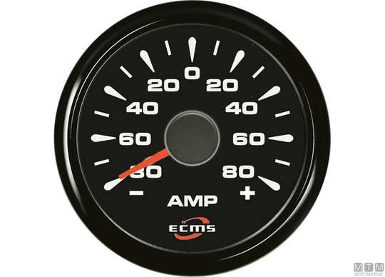 Merilniki Ecms 12/24V All Black so opremljeni s priključenim Molex konektorjem. Črni okvir iz nerjavečega jekla in črna številčnica. Vodotesna leča, zaščitena po standardu IP67 ter odporna proti megljenju. Prilagodljiva večbarvna LED osvetlitev številčnice. Nivojske merilnike je mogoče nastaviti na katero koli impedančno vrednost z uporabo zadnjega konfiguracijskega gumba. Privzeto so nastavljeni na standardno vrednost 0-190 Ohmov. Oljni tlačni merilniki za 5 in 10 barov so združljivi s standardnimi senzorji (10-180 Ohm), medtem ko je tisti za 30 bar združljiv samo z elektronskimi senzorji (0,5-4,5V). Ampermetri vsebujejo senzor (šant) za merjenje toka.