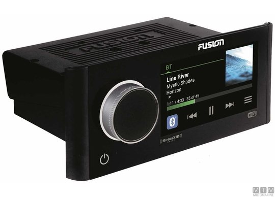 Fusion MS-RA770 pomorski stereo z zaslonom na dotik LCD prikazovalnikom s steklenim vezjem. FM/AM RDS radio, pripravljen za DAB, z USB vhodom in dvema zadnjima AUX vhodoma. Vgrajen Wi-Fi in Bluetooth za pretakanje zvoka iz pametnih telefonov ali združljivih naprav. Preko funkcije daljinskega upravljanja Fusion-Link se stereo lahko upravlja tudi s Garmin urami ali večfunkcijskimi zasloni NMEA2000. Opremljen z DSP (tehnologijo digitalne obdelave signalov) za optimizacijo zvoka v realnem času. Neodvisne nastavitve Multi-Zone nadzora za štiri ločene avdio cone.IPx7 vodoodporen.Lahko je vgradni ali ploskasto nameščen.Komplet za naknadno montažo omogoča namestitev stereo naprave v že obstoječe odprtine serij 650/750/755.