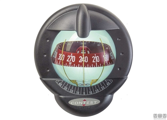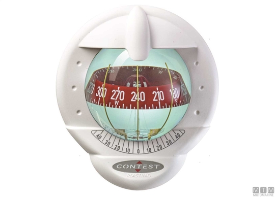 Plastimo Contest 101 Compass flush-mount on vertical bulkhead. • Card diameter 100 mm • Red card with white graduations every 5° • Ideal for sailboats over 9 meters• Supplied with clinometer and cover• Standard LED lighting 12/24 V (do not cut the wires to avoid LED damage)