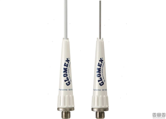 Fiberglass or Stainless Steel VHF antenna RA106 FME, suitable for any type of boat. The FME connector allows quick and easy installation using pre-wired cables and adapters. 5/8" x 24 threaded base.100W / 3db / 156/162 MHz / 50 Ohm. Height: 0.9 m. With the adapter the antenna can be mounted on 1" UNS threaded bases. The connector enables connection of the FME thread to aPL258 coaxial connection.