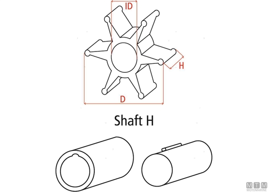 Nadomestno kolo rotorja za črpalke hlajenja motorja in vodne sisteme.↵Neopren: za sladko in slano vodo↵ Nitril: za kaluže, olja in derivate