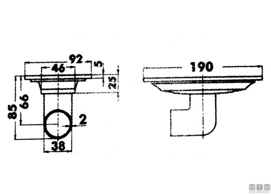 Odtočna cev iz nerjavečega jekla 316 za krov in kokpit z izvlečno rešetko. Priključek za cevi s premerom 38 mm.