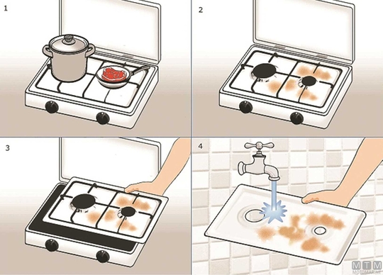 Kuhalna plošča s pokrovom in odstranljivim zgornjim delom iz nerjavečega jekla za enostavno in hitro čiščenje. Opremljena z varnostnimi termoparji, gorilniki iz Pyralove zlitine ter črnimi emajliranimi razpršilci plamena z rešetko. Moč gorilnika: 1500/2500W.