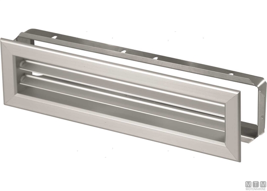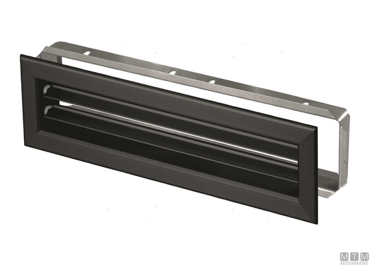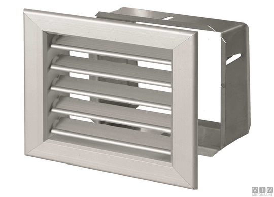 Dovodne in povratne rešetke za sisteme klimatizacije. Struktura in zadnje ohišje iz nerjavečega jekla z anodiziranim aluminijastim okvirjem in nastavljivimi lopaticami za pretok.