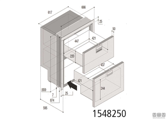 Vitrifrigo zunanja ohišja Hladilniki iz nerjavečega jekla z notranjo hladilno enoto Danfoss 12/24 V in odpiranjem predalov z ventilacijsko funkcijo za obdobja neuporabe. Sestavljena sta iz dveh predelkov, pri čemer je mogoče vsakega prilagoditi na želeno temperaturo prek digitalne plošče. Vsak predal se lahko nastavi kot hladilnik ali zamrzovalnik. Opremljeni so z LED lučko in drsnim profilom za standardno namestitev ali vgrajeno s poravnana vrata.