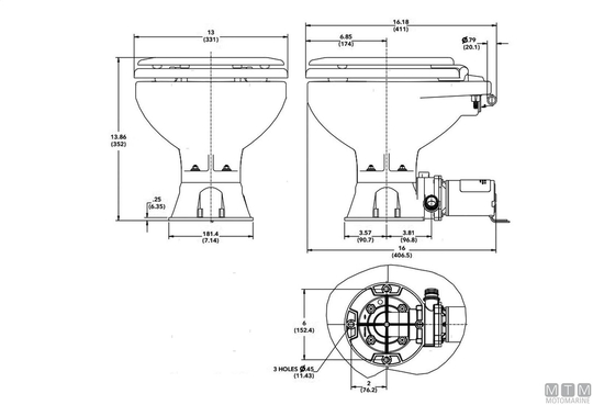 Jabsco Quiet E2 37245 serija Električna straniščna školjka iz porcelana, tih pretok in visokozmogljiv macerator. V kompletu s kontrolno ploščo in samosesalno vodno črpalko s filtrom, deluje tudi s slano vodo. Priključki za dovod vode velikosti 19 mm. Osnovo je mogoče namestiti v različne smeri glede na razpoložljiv prostor z odtočnim priključkom premera 25 mm, ki ga je mogoče postaviti na desno ali levo stran maceratorja.
