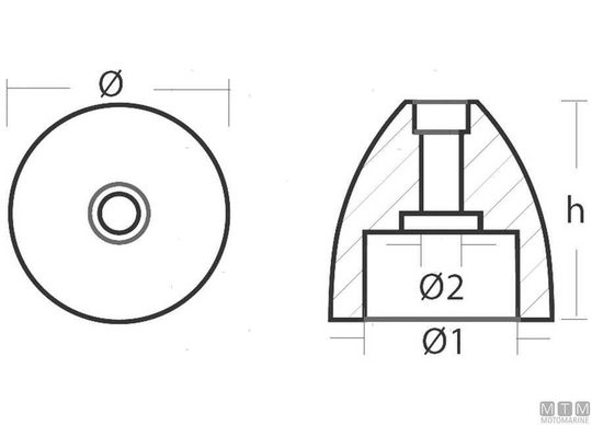 Ogivna anoda s cilindričnim vložkom za propelerna gred.