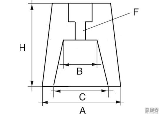 Ogivalna anoda s stožčastim vstavkom za gredi propelerjev.