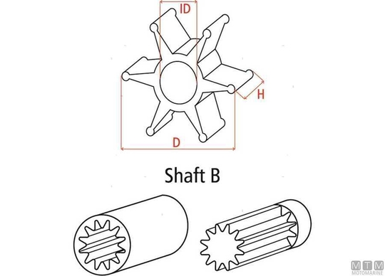 Nadomestni rotor za hlajenje motorja in črpalke za kalužo.↵Neopren: za sladko in slano vodo↵ Nitril: za kalužo, olja in derivate