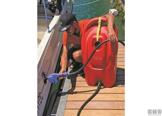 Servisni rezervoar za gorivo na kolesih. Opremljen je z odzračevalnikom, zapornim ventilom in 3-metrsko gibljivo cevjo. Razdelitvena šoba, s pretokom 8 l/min, deluje prek vgrajene ročne tlačne črpalke in omogoča tako dovod s prostim padcem kot tudi dovod navzgor. Odobreno za cestni prevoz po standardih ZN.
