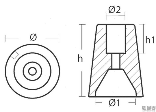 Ogive Ferretti anoda s koničnim vložkom za pogonske gredi.