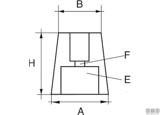 Ogivna anoda s koničasto šesterokotno vdolbino za osi propelerjev.