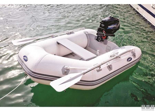 Čoln iz visokokakovostne tkanine 1100D s toplotno varjenim PVC premazom, zelo lahek in zvijljiv, ga je mogoče enostavno zložiti in shraniti v omarici. Opremljen z velikimi tubami s pršilnim odbojnikom in ojačanim rebrastim dnom. Priložena črpalka, komplet za popravilo, vesla, klop, privezna vrvica in torba za prenašanje.