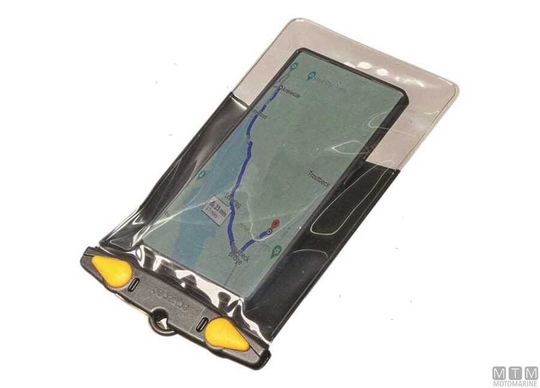 Vodotesno ohišje, ocenjeno do globine 10 m za pametne telefone, z nosilcem za montažo na letev za cevi do 32 mm. Omogoča uporabo pametnega telefona v nastavljivem navpičnem položaju med vsemi navtičnimi in zunanjimi dejavnostmi. Popolna funkcionalnost gumbov in zaslona na dotik je zagotovljena tudi skozi torbico. C = notranji obseg